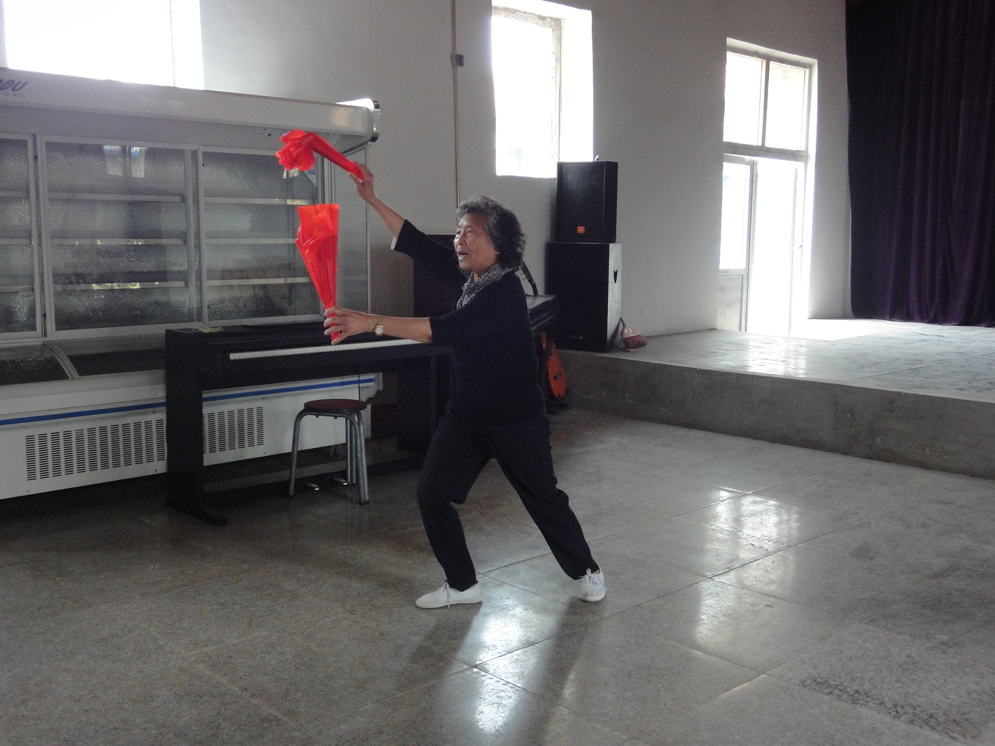 ダンスのほかにも、音声にあわせ喜劇を演じます。